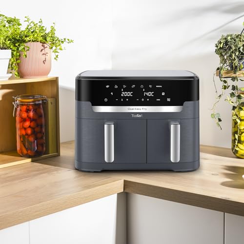 Tefal Dual Easy Fry XXL Doppelkammer-Heißluftfritteuse, 11 Liter Fassungsvermögen, 6,5 L Schublade und 4,5 L Schublade, ohne zusätzliches Fett, 7 Programme, spülmaschinengeeignet, grau, EY942BE0