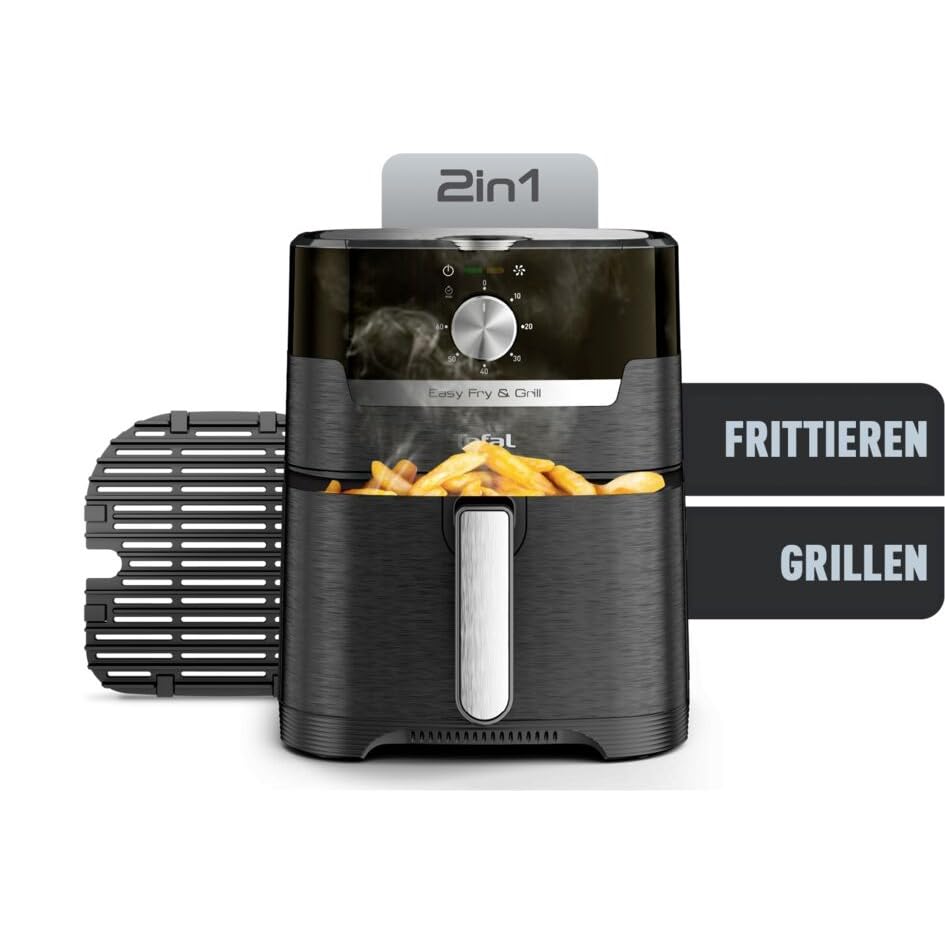 Tefal Easy Fry & Grill Classic Heißluftfritteuse, 2-in-1 Technologie (Air Fryer und Grill) XL, 4,2 Liter für 6 Portionen, 1550 Watt, energiesparend, ohne Öl, gesunde Fritteuse, schwarz, EY5018