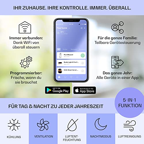 APP UND FERNBEDIENUNG: Die intelligente App verbindet die Klimaanlage mit jedem Zuhause und gibt dir die volle Kontrolle per Smartphone. Mit der Fernbedienung kannst du die Temperatur und andere Einstellungen schnell überprüfen oder ändern.