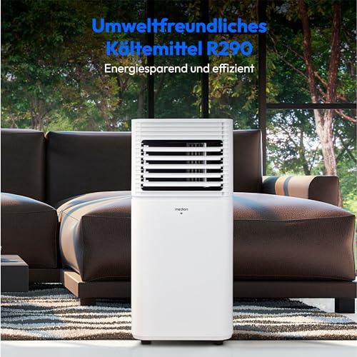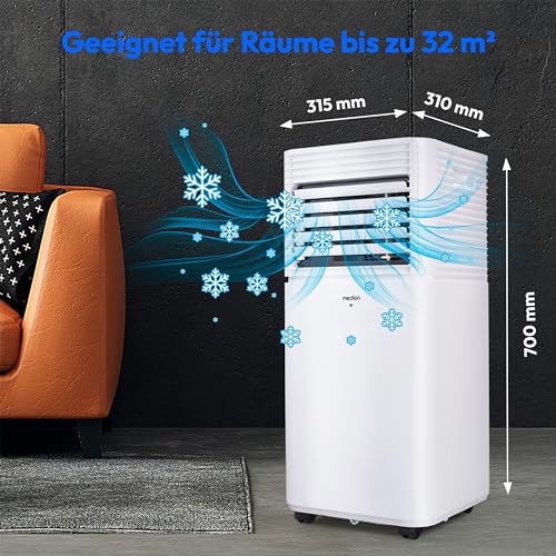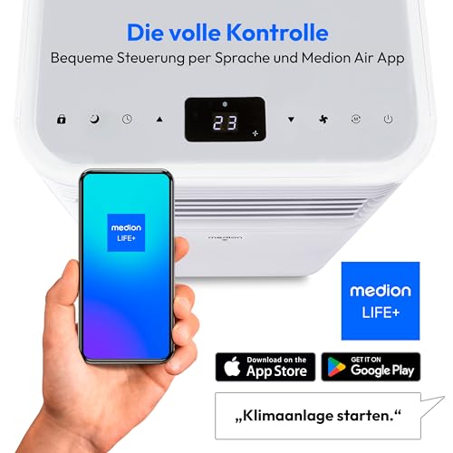 MEDION Smarte Mobile Klimaanlage mit Abluftschlauch P901 (9000 BTU, mobil, inkl. Fensterabdichtung, bis 32m², 3in1,Kühlen Entfeuchten Ventilieren, App- und Sprachsteuerung, Schlafmodus, MD 37732)