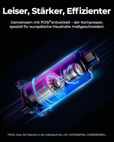 Innovative Kühleffizienz: Unsere Klimaanlage mobil verwenden maßgeschneiderte POSI-Kompressoren. POSl hält mehr als 60 Patente für Kältetechnik, z.B. CN119268116A, CN118089185A. Bei gleicher Kühleffizienz von mobile Klimaanlage 9000 BTU spart unser Kompressor mehr Strom und weist eine höhere Energieeffizienz auf.