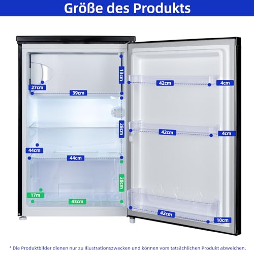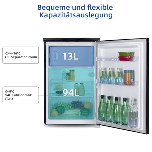 CHIQ CTT107BC Kühlschrank Klein 107 Liter, Höhe 84cm, Tiefe 55cm, Platzbedarf nur 0,3 ㎡, Mikro-Gefrierfach, Vario Box, 7 Temperaturregelstufen, geräuscharm, 87 kWh/Jahr, Schwarz