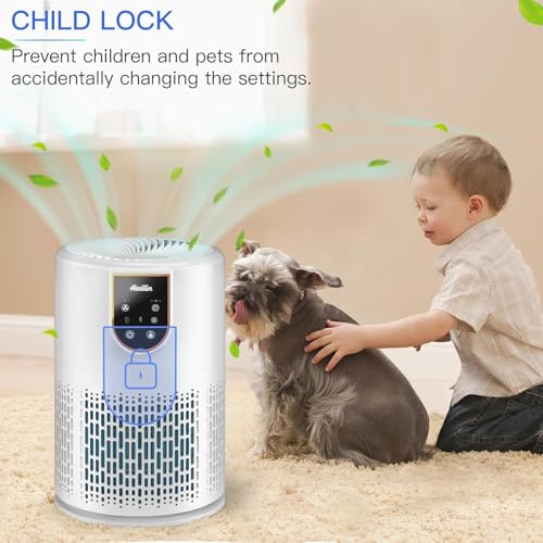 【Ein erholsamerer Schlaf】: Unser Luftreiniger AP0801 hat eine Zeitschaltuhr und eine Kindersicherung. Er kann sich automatisch ausschalten, wenn Sie schlafen, und Sie müssen sich keine Sorgen machen, dass Kinder oder Haustiere ihn versehentlich berühren. Alle Lichter auf dem Display können ausgeschaltet werden, ganz zu schweigen davon, dass er mit weniger als 25 dB Lärm arbeitet, so dass Ihr Gehör und Ihre Sicht nicht gestört werden.