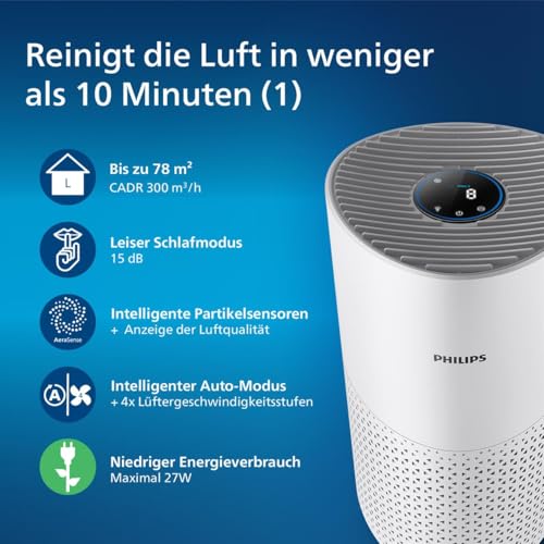 GROSSE ABDECKUNG VON BIS ZU 78 m²: mit CADR 300 m³/h, können 20 m² gereinigt werden in weniger als 10 Min (1).