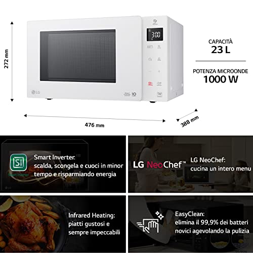 LG, NeoChef, Mikrowelle mit Grill, 476 x 272 x 388 mm, Fassungsvermögen: 23 Liter, 1000 W, weiß.