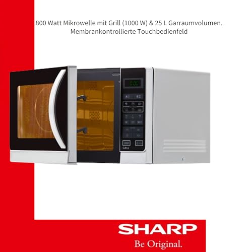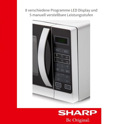 Sharp R742INW 2-in-1 Mikrowelle mit Grill / 25 L / 900 W / 1000 W / LED-Display / 8 Automatikprogramme / Gewichtgesteuertes Auftauen / Kindersicherung / Energiesparmodus / hoher Rost / silber