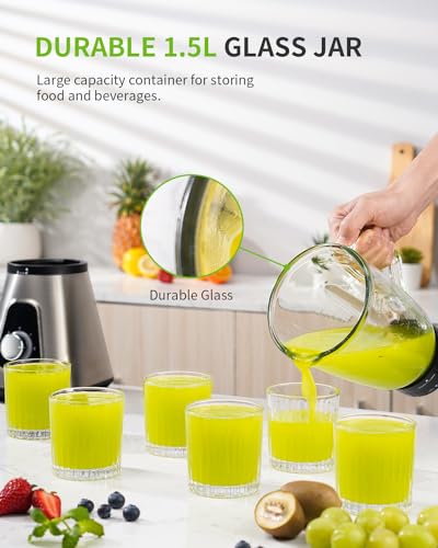 [Langlebiger 1,5L Glasbehälter]: Unser standmixer glas ist aus hochwertigen und langlebigen materialien gefertigt, der aufsatz für den 1,5L glasbehälter ist robust genug, um allen mix- oder lebensmittelverarbeitungsaufgaben standzuhalten.