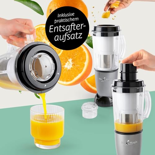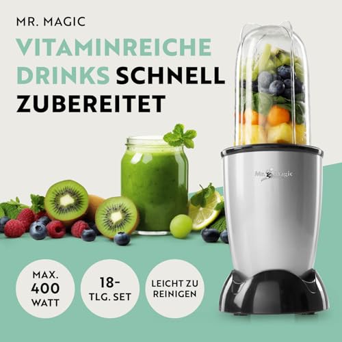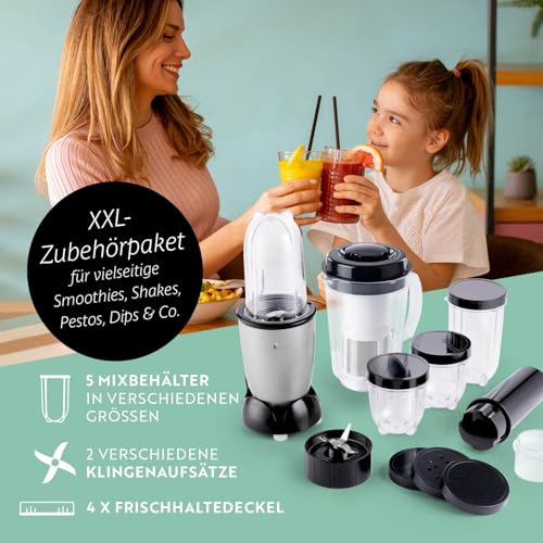 GOURMETmaxx Mr. Magic Mixer | Smoothie Maker mit XXL-Zubehörpaket | Standmixer 18-tlg. | Blender mit auslaufsicheren Frischhaltedeckeln | Food Processor für Shakes, Smoothies etc.