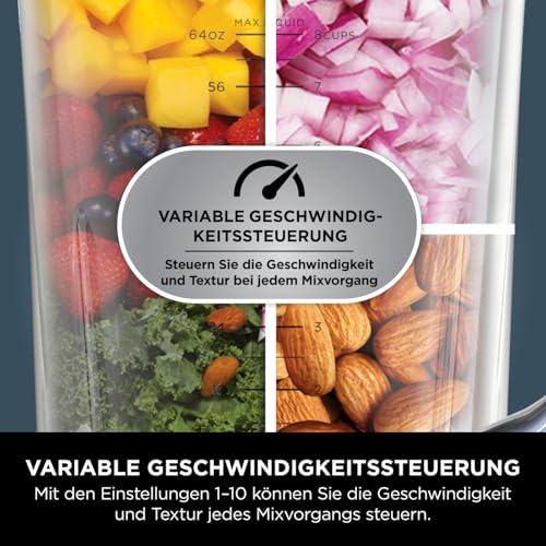 AUTO, MANUELL & VOREINGESTELLTE MODI: Mit den Ninja Detect Mixern haben Sie so viel oder so wenig Kontrolle in der Küche, wie Sie möchten. Genießen Sie die automatische BlendSense-Technologie, 10 Geschwindigkeiten und praktische voreingestellte Modi