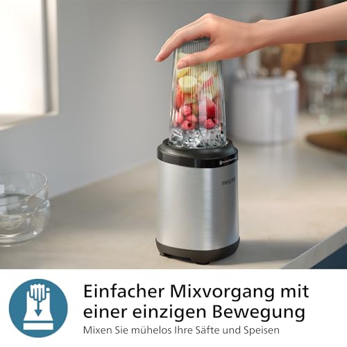 Philips 5000 Series Standmixer – Mini Smoothie Maker, Abnehmbare Klingen, 700ml Becher, ProBlend Plus-Technologie, Leicht zu reinigen, Elegantes, kompaktes Design. 800Watt Leistung. Silber (HR2764/00)