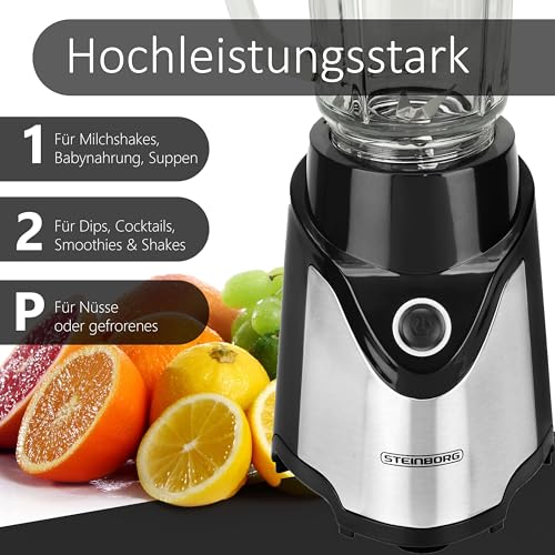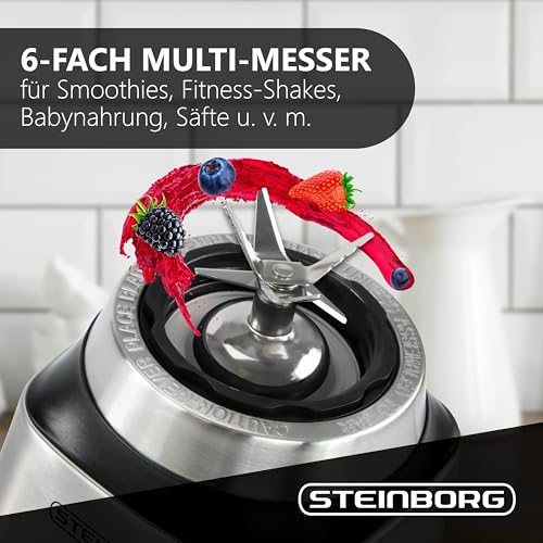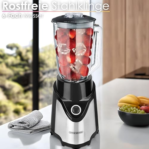 ✔️ leistungsstark und effizient Mit einer Leistung von 500 Watt bringt der Standmixer genug Power mit, um selbst harte Zutaten wie Nüsse, Eiswürfel oder gefrorene Früchte mühelos zu zerkleinern. Dank des hochwertigen 6-fach Stahlmessers wird alles gleichmäßig püriert – für cremige Smoothies, sämige Suppen oder perfekte Pesto-Kreationen.