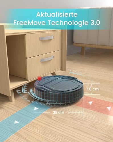 😃【Kompaktes Gehäusedesign】Das einteilige Gehäusedesign ist kompakt, mit einem Durchmesser von nur 28 cm und einer Höhe von 7,85 cm. Es funktioniert unter Betten, Sofas und anderen Möbeln und ist somit ideal für kleine Räume und bietet eine größere Abdeckung für eine gründliche Reinigung.