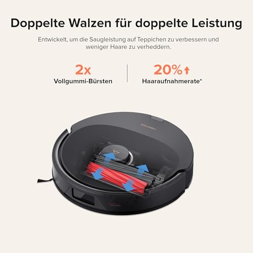 roborock Q8 Max+ Saugroboter mit Absaugstation, DuoRoller-Bürste, 5500Pa Saugkraft, 2,5L Staubbeutel, 350mL Wassertank, Wischroboter PreciSense-LiDAR-Navigation (Schwarz)