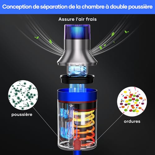 Staubabscheidungsfilterdesign: S18 akku staubsauger tierhaare Staubabscheidungsfilterdesign, das Schmutz unterschiedlicher Partikelgröße trennt und filtert, sekundäre Luftverschmutzung verhindert, die ausgeblasene Luft reinigt und die Gesundheit Ihrer Familie schützt. Dadurch ist es besonders für Personen mit Staubempfindlichkeit und Asthma geeignet. Darüber hinaus erhöht das Doppelbehälterdesign die Staubbehälterkapazität. Hinweis: Es wird empfohlen, den HEPA-Filter alle 2-3 Wochen zu reinigen und ihn alle 3 Monate auszutauschen, um eine optimale Leistung zu erzielen.