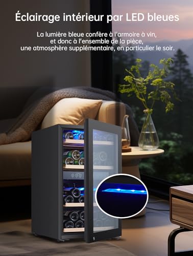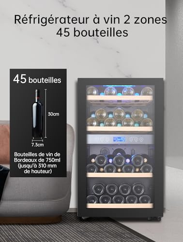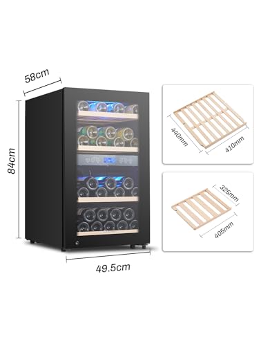 ENERGIEEFFIZIENTER KOMPRESSOR: Mit einer hochwertigen Kompressoreinheit bietet(Energieklasse G), der Kalamera Weinkühlschrank 2 Zonen einen gleichmäßig gekühlten Raum für Ihre Weinflaschen mit minimalen Vibrationen, leisem Betrieb mit 41 dB und einer guten Kühlleistung.