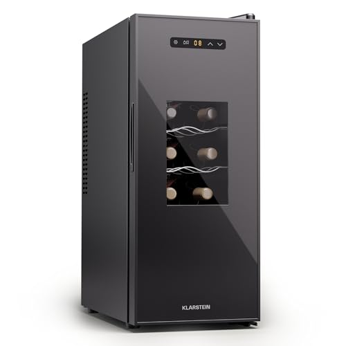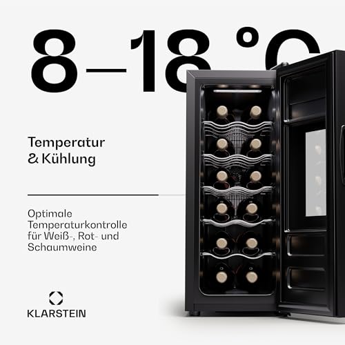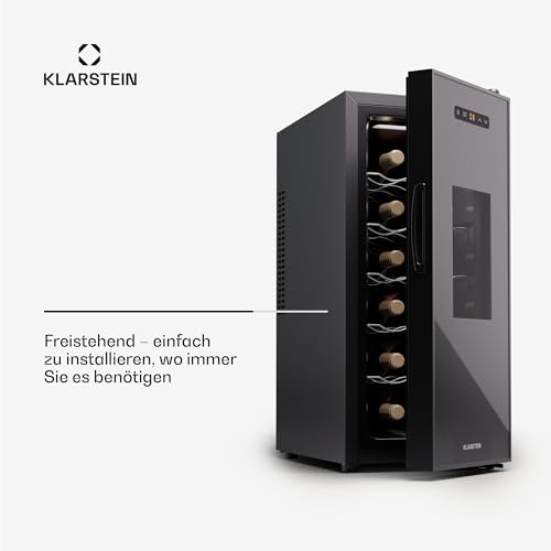 Klarstein Freistehender Weinkühlschrank 1 Zone, Getränkekühlschrank Klein, Kleiner Weinschrank, Wein-Kühlschrank Klein mit Glastür, Indoor/Outdoor Flaschenkühlschrank, Wine Fridge, 12 Flaschen