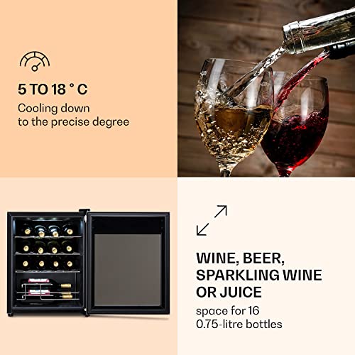 Klarstein Ultimo Uno Weinkühlschrank – Wine Fridge mit Temperaturregler: 5-8 °C, Weinschrank mit Touch-Bedienfeld, Platz für 16 Flaschen, 42 Liter Gesamtvolumen, schwarz