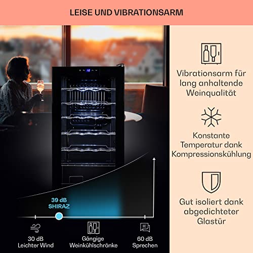 Klarstein Weinkühlschrank, 1 Zonen Getränkekühlschrank Klein, Kleiner Weinschrank 74L, Wein-Kühlschrank Klein mit Glastür, Indoor/Outdoor Flaschenkühlschrank, Wine Fridge 5-18°C, 28 Flaschen