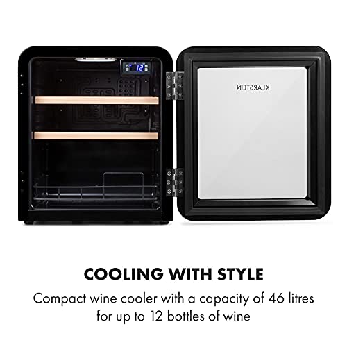 Klarstein Weinkühlschrank, Getränkekühlschrank Schmal, Kühlschrank mit Glastür, Getränkekühlschränke Freistehend, Weinkühlschrank Klein, Weinkühlschränke 1 Zone, UV-Schutz, 4-22 °C, 12 Flaschen