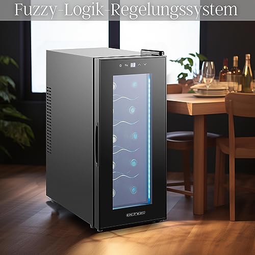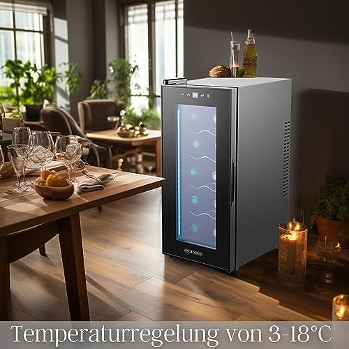 ✔️ Unser Weinkühlschrank mit thermoelektrischem Kühlsystem ist die ideale Lösung für Weinliebhaber, die ihre Weinsammlung optimal lagern und präsentieren möchten. Mit seinen zahlreichen herausragenden Eigenschaften bietet er die perfekte Umgebung für die Reifung und Aufbewahrung von bis zu 10 Weinflaschen.