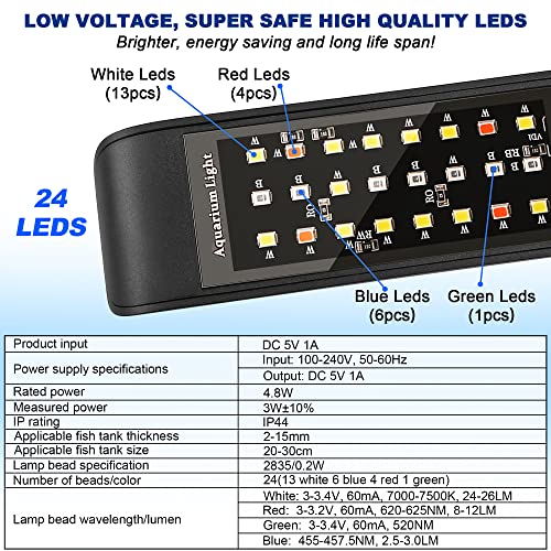 ![LED Aquarium klemmlampe mit Timer, Clip Beleuchtung Vollspektrum [RGB + Weiß Licht] 10 Helligkeitsstufen Dimmbar, Klemmleuchte Aquariumlampe für 20-30CM Fisch Tank, Schwarz – Bild 6](https://m.media-amazon.com/images/I/41FiMLI43WL.jpg)