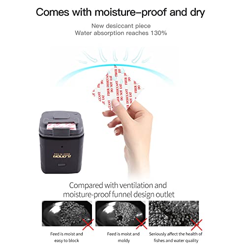 Frische des Fischfutters: Das Design der Futterbox kann die Frische des Futters effektiv gewährleisten. Es kann verschiedene Futterformen aufnehmen, wie Pellets, Flocken, Stangenfutter und so weiter.
