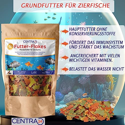 📦 LIEFERUMFANG: Centra24 Futter-Flakes 1L (140g) in wiederverschließbaren Standbodenbeutel mit Originalitätsverschluss (ohne Aluminium). Mindesthaltbarkeit: 2 Jahre ab Kaufdatum