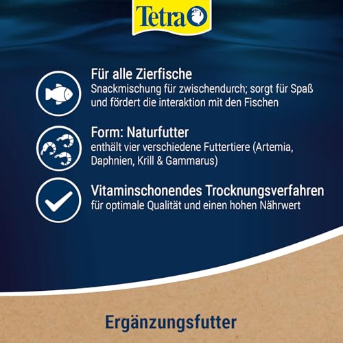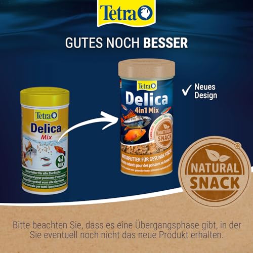 Tetra Delica Mix Naturfutter – Mischung mit 4 verschiedenen Futtertieren (Wasserflöhe, Artemia, Krill, Gammarus), natürliche Snacks für Zierfische, 250 ml Dose