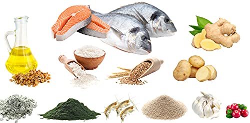 ✅ Entscheidend ist was DRIN ist! Fischmehl (29,1% davon 4,85% Lachsmehl), Weizenmehl, Reismehl, Weizenkeime, Fischöl, Spirulinaalgen, Ingwerpulver, Kartoffelflocken, Gammarus, Hefe (getrocknet, ß-D-Glucan), Knoblauch, Cranberries