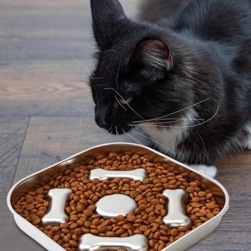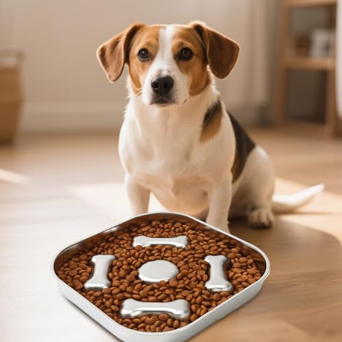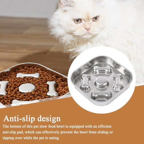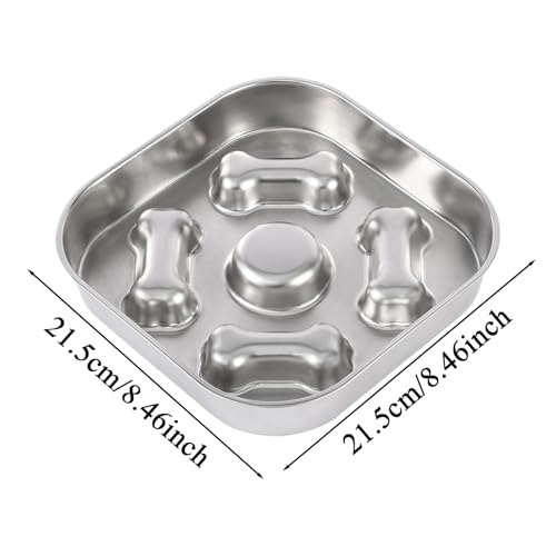 Dog Slow Feeder Bowl, Stainless Steel Pet Dish, Anti-Slip Bite-Resistant Feeder, for Small to Large Dogs and Cats, Eating Habits Training, Healthy Feeding, 8.46×8.46×1.57 inches