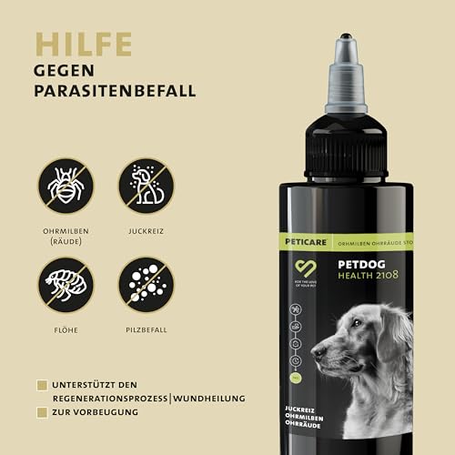 Anti-Parasiten Mittel für Hunde-Ohren | Gegen Ohrmilben Räude Pilze | lindert Juckreiz & fördert Regenerationsprozess | einzigartiges PRS® System für Lange Wirkung – petDog Health 2108