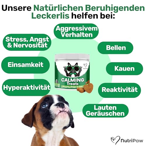 Beruhigungs-Leckerlis für Hunde – Reduzieren Stress, Angst, Trennungsangst, Bellen, Hyperaktivität, Reaktivität, Aggression, Reiseprobleme – Entspannung ohne Schläfrigkeit für Hunde