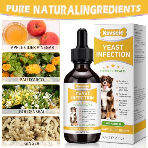 Hefe-Infektion Behandlung für Hunde, Hund Hefe-Infektion Behandlung für juckende Hundehaut Relief, Hund Allergie Relief, juckende Ohr Relief für Hunde, Hund Ohr-Infektion – 2 FL Oz / 60ml
