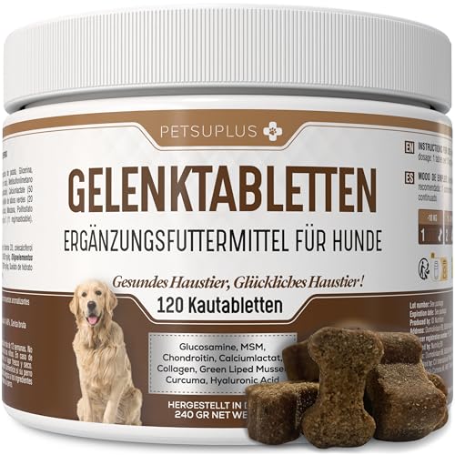 Hunde-Gelenktabletten, 120 Kautabletten, Hunde Gelenk Supplement Tabletten, Glucosamin Grünlippmuschel MSM Chondroitin Kollagen Hyaluronsäure, stärkt Gelenke, wirkt entzündungshemmend