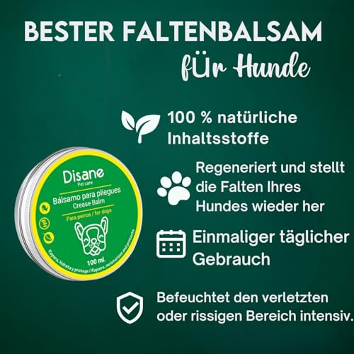 Natural Dog Anti-Falten-Balsam 100ml | Hundefaltencreme | Schützt, repariert und befeuchtet die gereizte Haut im Gesicht und an den Ohren des Hundes. Frei von Duft- und Geschmacksstoffen.