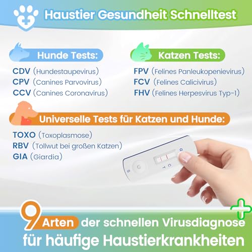 🐶🐱 【9 Tests für häufige Haustierkrankheiten】- Erkennen Sie 9 der häufigsten Krankheiten bei Hunden und Katzen, darunter Staupe, Parvovirus, Toxoplasmose, felines Herpesvirus, Giardia und mehr. Diese frühen Tests helfen Ihnen, Gesundheitsprobleme zu erkennen, bevor sie ernst werden, und sorgen so für ein gesünderes Leben Ihrer Haustiere. Egal, ob Sie einen Hund oder eine Katze haben, behalten Sie ihr Wohlergehen im Auge!