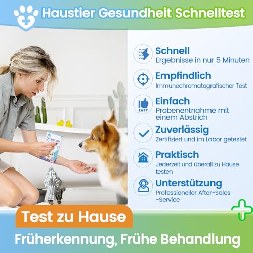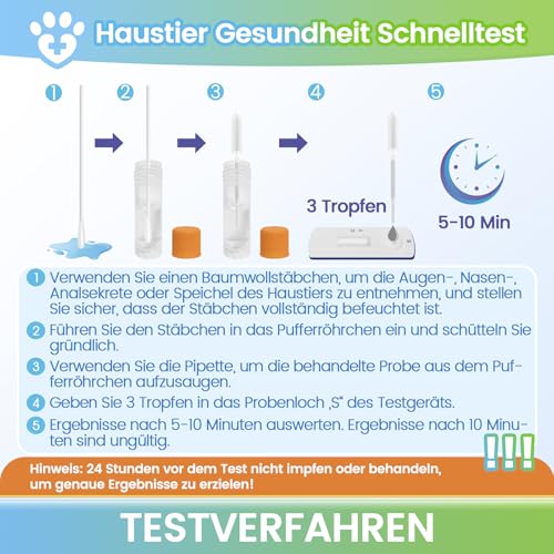 🏠🕒 【Test zu Hause – praktisch und schnell】- Führen Sie den Test ganz einfach zu Hause in nur 15 Minuten durch. Keine stressigen Tierarztbesuche oder lange Wartezeiten nötig. Unser benutzerfreundliches Testkit liefert Ihnen schnell genaue Ergebnisse, sodass Sie schneller Maßnahmen ergreifen können. Testen Sie, wann es Ihnen passt, egal ob nach Feierabend oder am Wochenende.
