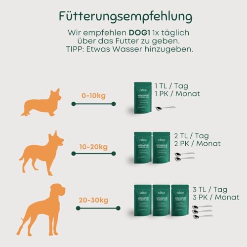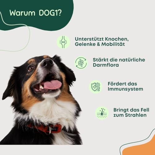Tierärztlich geprüft und empfohlen – das Beste für deinen besten Freund: DOG1 wurde in enger Zusammenarbeit mit führenden Tierärzten entwickelt, um sicherzustellen, dass dein Hund nur die besten, sichersten und wirksamsten Inhaltsstoffe erhält. Von Glucosamin und Chondroitin für starke Gelenke bis hin zu Vitamin B-Komplex für ein starkes Immunsystem – DOG1 liefert genau das, was dein Hund für ein gesundes, aktives und glückliches Leben braucht.