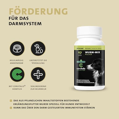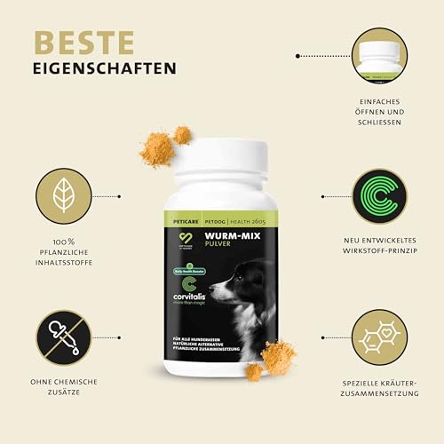 Wurmkur Pulver für Hunde | effektive pflanzliche Entwurmung | vorbeugend & akuter Wurmbefall | Wurmmittel als Ergänzungsfutter mit 100% natürlichen Inhaltsstoffen | petDog Health 2605
