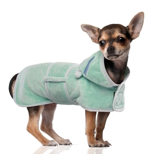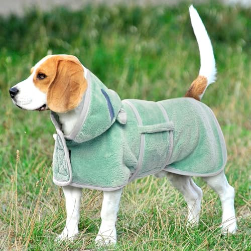 DENTRUN Bademantel für Hunde Klettverschluss am Kragen der Kleine Hunde Bademantel mit Hut hundehandtuch Dog Bathrobe Welsh Corgi Meer Schwimmen (Grün,S)
