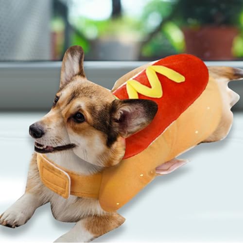Haustier Hot Dog Kostüm Hamburger Design Hund Kleidung Haustier Halloween Cosplay Outfit Weihnachtsfeier Dress Up für Welpen Kätzchen(L)