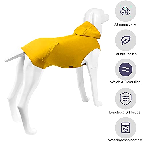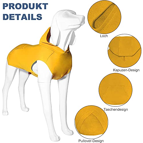 Hunde Hoodie, Hundemantel mit Hut & Taschen & Leinenloch, Weicher und Atmungsaktiver Kapuzenpulli Für Große Hunde Winterhundebekleidung Drinnen Ohne Ärmel Hundekleidung von Kickred (Gelb-S)