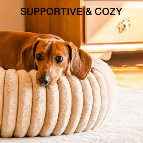 Elegante und anpassungsfähige Ästhetik: Mit einem schlanken, neutralen Design, das sich nahtlos in jede Inneneinrichtung einfügt, ist unser flauschiges kleines Hundebett das perfekte Geschenk für Tierliebhaber. Erhältlich in verschiedenen Größen und Farben. Wir empfehlen, eine Größe größer zu wählen, als Ihr Haustier benötigt, um eine zusätzliche Schicht weichen Komforts zu erhalten