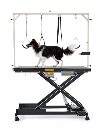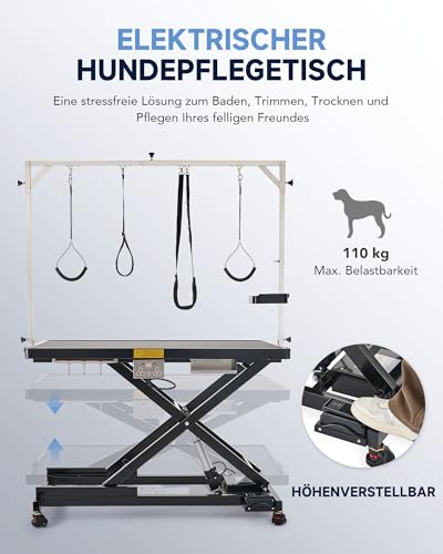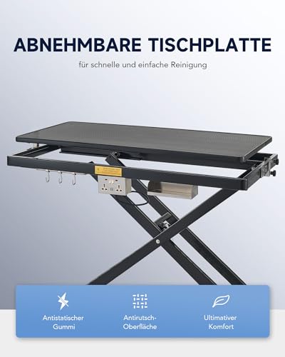 Elektrischer Hundepflegetisch Tierpflegetisch mit X-Form Höhenverstellbarer Trimmtisch für Haustiere Hundepflegetisch mit elektrischem Aufzug(Schwarz)