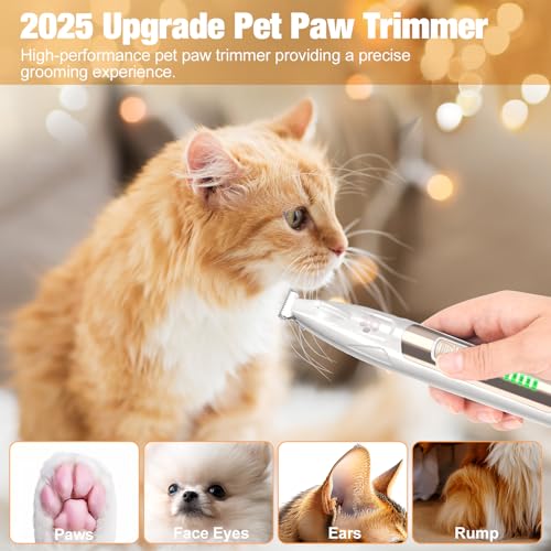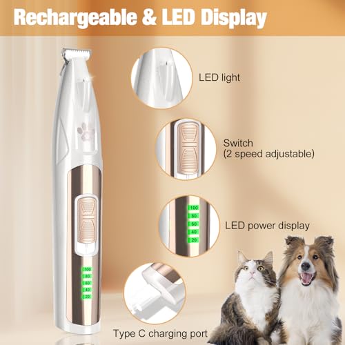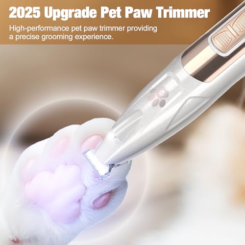 Pfotentrimmer für Hunde mit LED-Beleuchtung, Leiser Betrieb, Akku-Anzeige & Type-C-Ladung – Pfotenpad-Trimmer für Hunde, Katzen und Haustiere (Weiß)