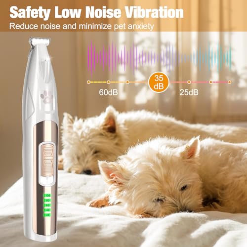 🐕【35 dB Leiser Betrieb】 Beruhigende Pflege durch ultra-leises 35 dB-Design. Dieser leise Pfotentrimmer ist ideal, wenn Sie einen Pfotentrimmer für Hunde suchen, der Ihr Tier nicht stresst. Im Gegensatz zu herkömmlichen Trimmern sorgt fortschrittliche Geräuschreduzierungstechnologie für ein stressfreies Erlebnis. So leise, dass Ihr Tier es kaum wahrnimmt – als wäre Spielzeit!