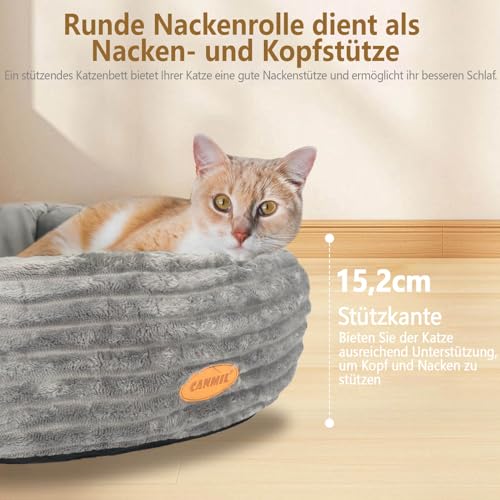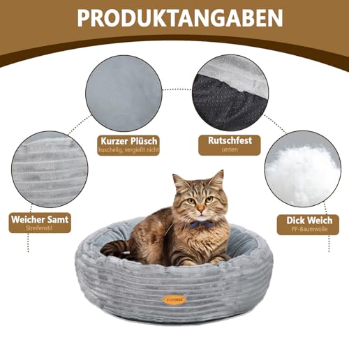 Katzenbett, Hundebett Rund, 50,8 cm Katzenbett Flausching, Waschbares Rundes Haustierbett, Katzenkorb zum Schlafen, Grau