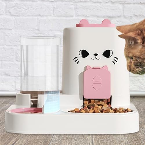 Automatic Cat Feeder, Cat Food Dispenser, Water Feeding Station, Large Capacity Design, Leakproof Dry Food Storage, Adjustable Portion Size for Indoor Cats, Dry Food