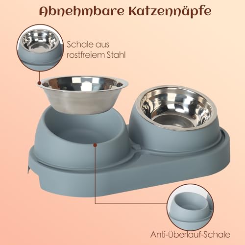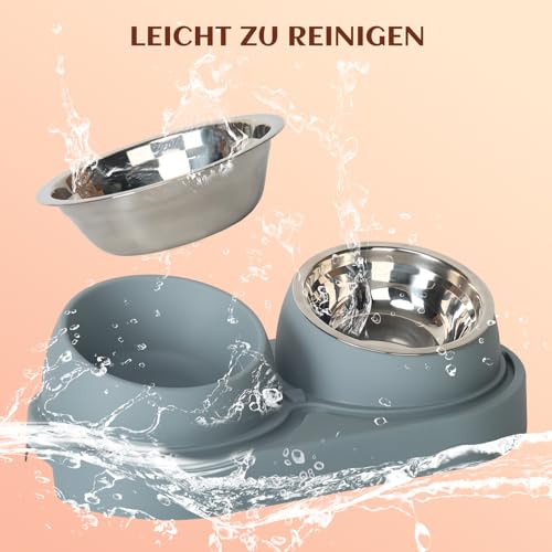 Doppelkatzen-Schalen und Futterschalen,Erhöhte Schüssel aus Edelstahl, geneigt, Futternapf und Futterschüsseln, Futterschalen für Hunde und Katzen cat Feeder