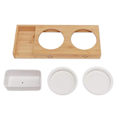 ✅ LEICHT ZU REINIGEN – Die Porzellannäpfe sind 100% spülmaschinenfest. Die Bambus-Halterung der Futtertheke ist mit einer wasserabweisenden Imprägnierung versehen, sodass Flüssigkeiten einfach abgewischt werden können.